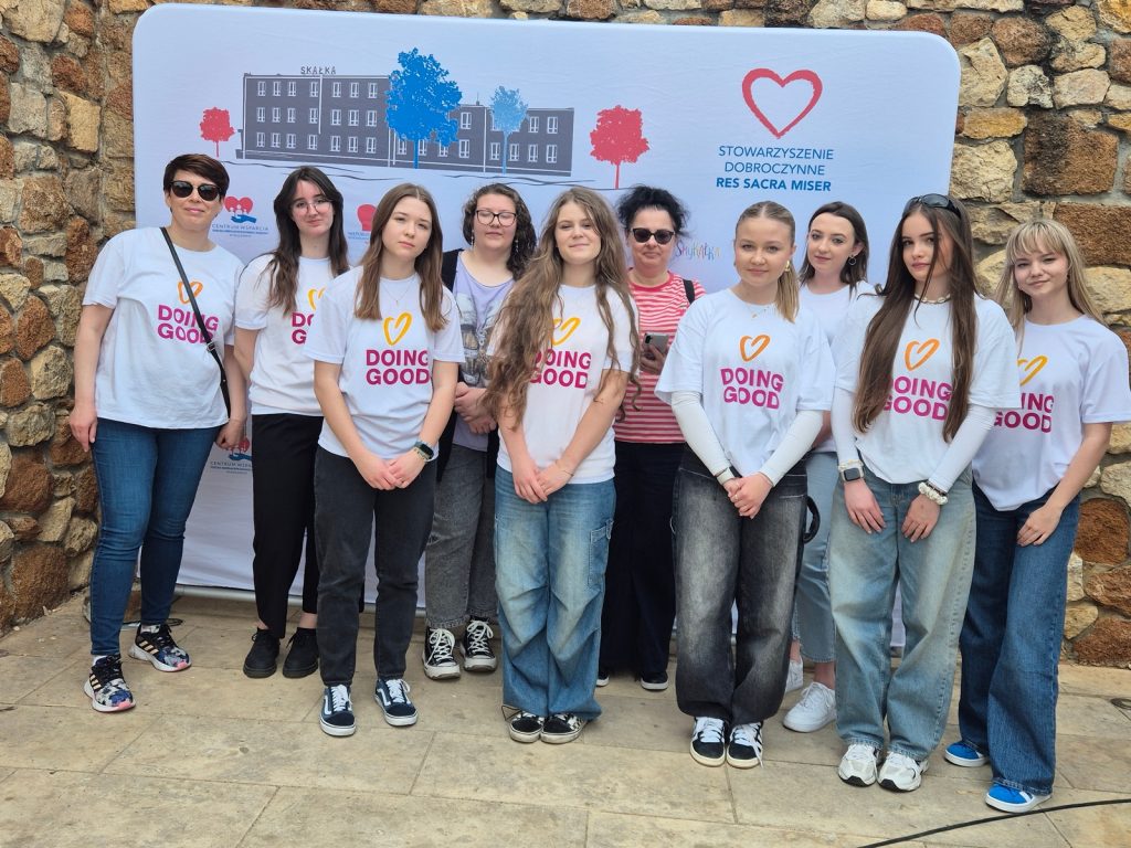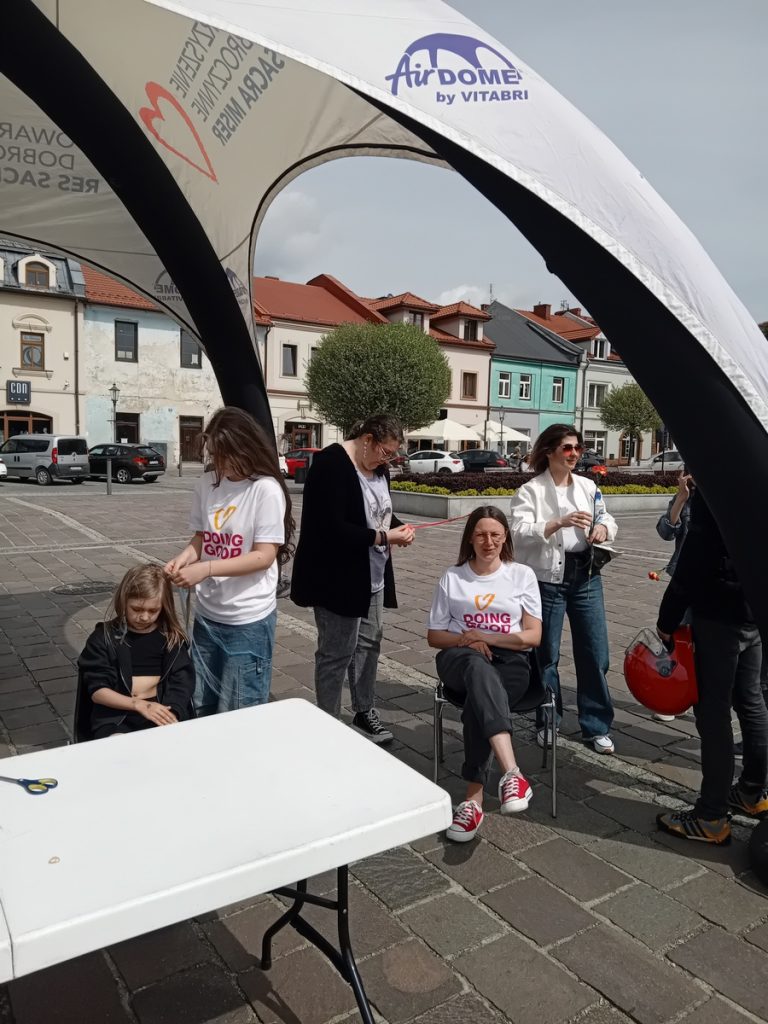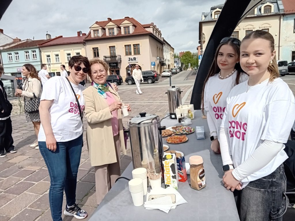 14 kwietnia odbył się na Rynku finał akcji Dzień Dobrych Uczynków. Każda ze szkół biorących udział w tym wydarzeniu zaprezentowała swój wkład w tę akcję. Nasze liceum uczestniczyło w tym wydarzeniu pod hasłem „Czwórka przyjacielem czworonogów”, bo nasze wizyty w schronisku „Rafik” to już tradycja. Wolontariuszki z naszego Klubu Wolontariatu częstowały też kawą, herbatą i ciasteczkami, a także pracowicie plotły kolorowe warkoczyki zachwyconym małym dziewczynkom. Natomiast Zuzia Probierz z 2c zaśpiewała piękną piosenkę umilając czas uczestnikom zabawy.