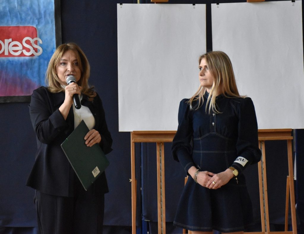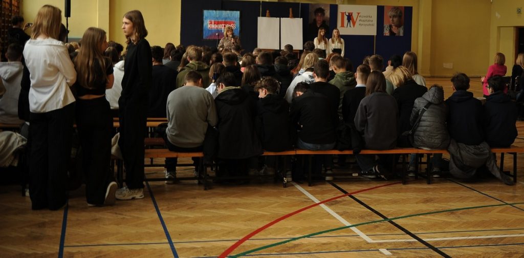 W dniu dzisiejszym odwiedziło nas ponad 200 ósmoklasistów. Ich przybycie, oprócz poznania szkoły, było również okazją do wręczenia nagród w dwóch konkursach: konkursie na interpretację wiersza K. K. Baczyńskiego oraz konkursie „Patron Roku”, zorganizowanego wraz z Powiatową i Miejską Biblioteką Publiczną w Olkuszu, której panią wicedyrektor – Beatę Szandor – gościliśmy również dzisiaj w naszej szkole. Oprócz ósmoklasistów, przybyli do nas również goście ze Szwecji.