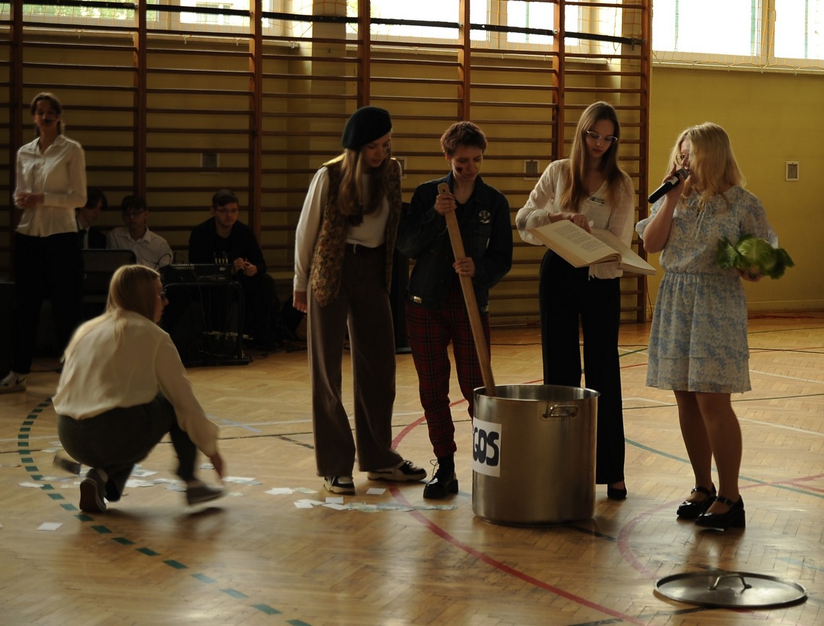 W dniu dzisiejszym odwiedziło nas ponad 200 ósmoklasistów. Ich przybycie, oprócz poznania szkoły, było również okazją do wręczenia nagród w dwóch konkursach: konkursie na interpretację wiersza K. K. Baczyńskiego oraz konkursie „Patron Roku”, zorganizowanego wraz z Powiatową i Miejską Biblioteką Publiczną w Olkuszu, której panią wicedyrektor – Beatę Szandor – gościliśmy również dzisiaj w naszej szkole. Oprócz ósmoklasistów, przybyli do nas również goście ze Szwecji.