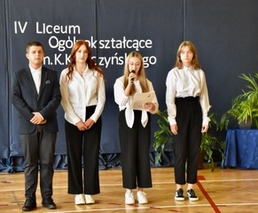 1 września społeczność IV Liceum Ogólnokształcącego im. K. K. Baczyńskiego powitała nowy rok szkolny 2022/2023. Podczas uroczystej akademii pożegnaliśmy dotychczasową dyrektor naszej szkoły panią Katarzynę Polak oraz powitaliśmy nową panią dyrektor Renatę Dylewską, a także panie wicedyrektor Iwonę Lis i Martę Sosińską. Do społeczności naszego liceum dołączyli również uczniowie ośmiu klas pierwszych. Akademię uświetnił występ zespołu muzycznego prowadzonego przez pana Macieja Banysia. Wszystkim uczniom oraz nauczycielom życzymy sukcesów w nowym roku szkolnym.
