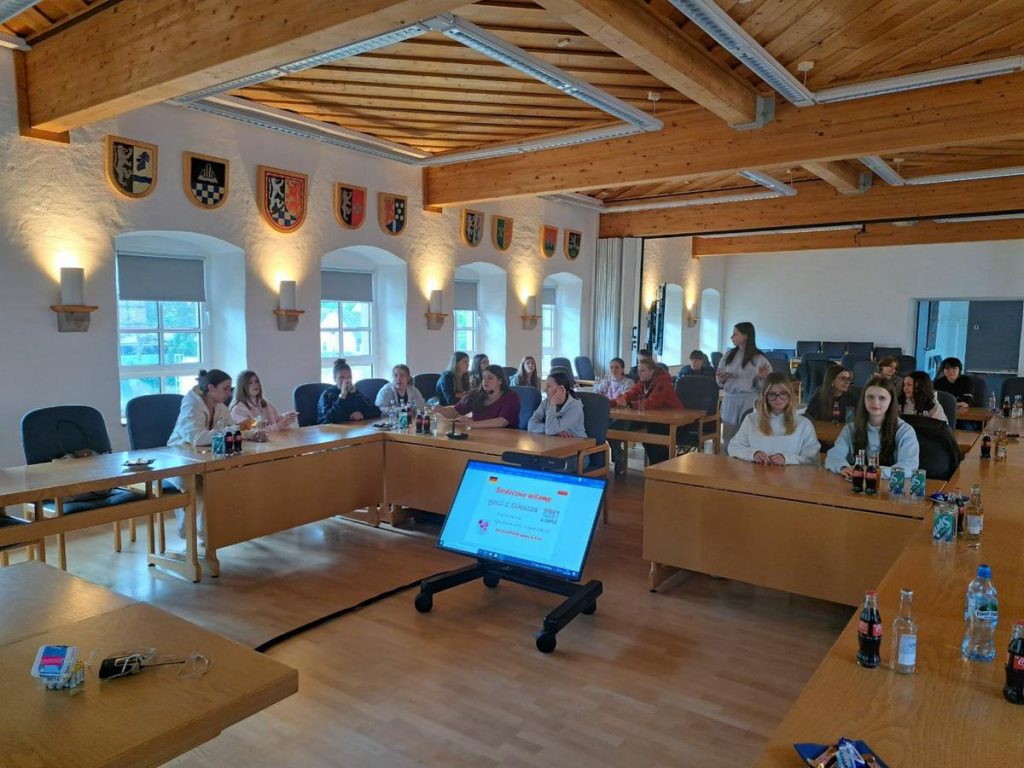 Jednym z ważniejszych wydarzeń podczas pobytu było oficjalne spotkanie z burmistrzem tamtejszej gminy panem Thomasem Jung. Spotkanie odbyło się w ratuszu – zabytkowym budynku, który zrobił na nas ogromne wrażenie. Burmistrz przywitał nas bardzo serdecznie, podkreślając, jak ważna jest współpraca między szkołami i jak duże znaczenie mają międzynarodowe wymiany młodzieży. W swoim przemówieniu mówił o wspólnych europejskich wartościach, potrzebie wzajemnego zrozumienia oraz o tym, jak młodzi ludzie kształtują przyszłość kontynentu.