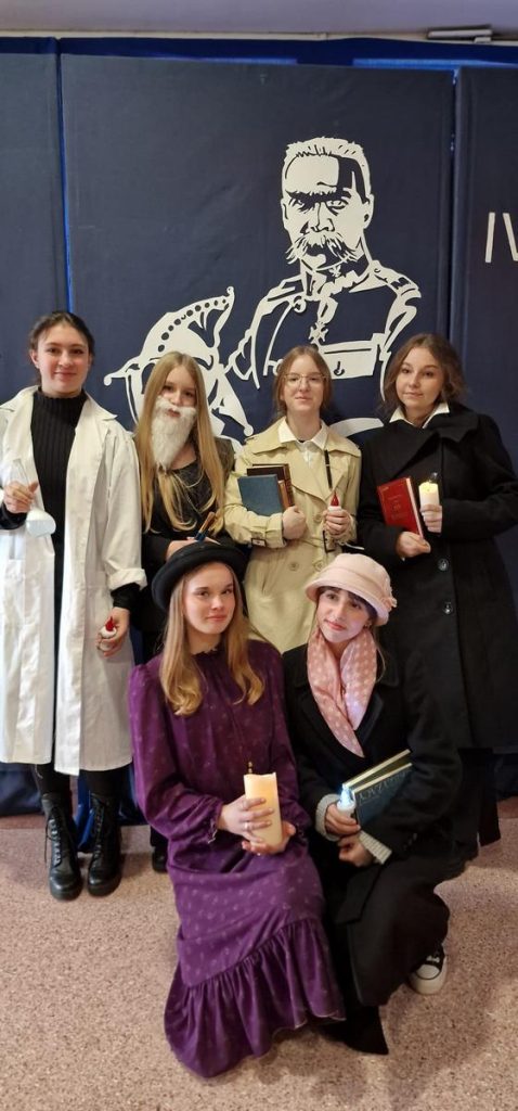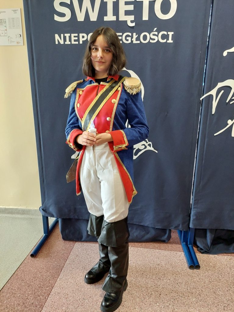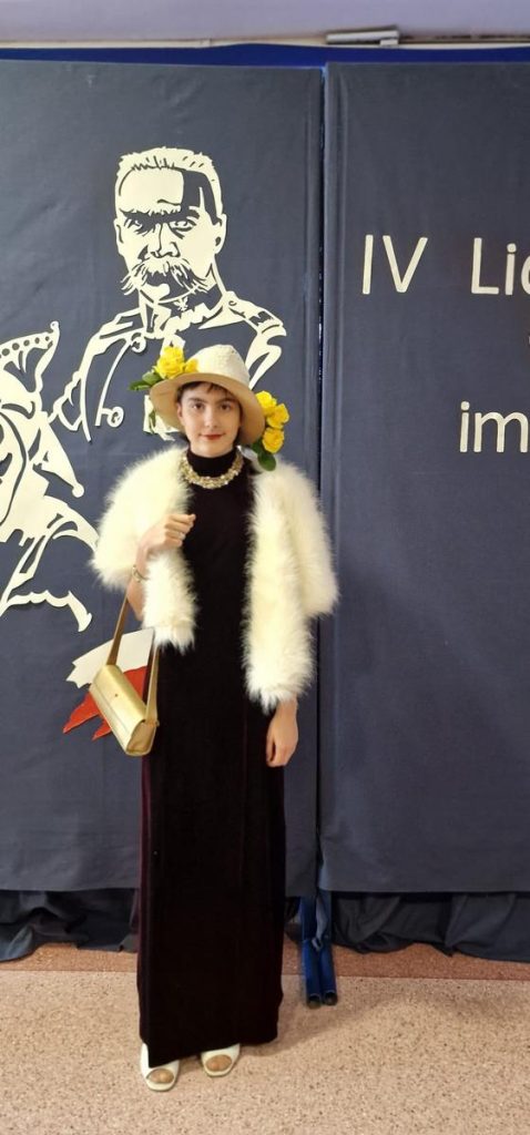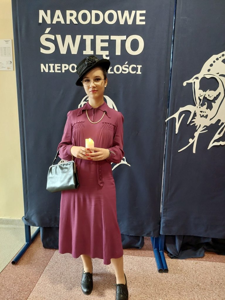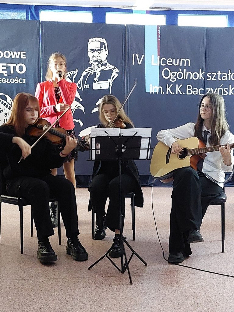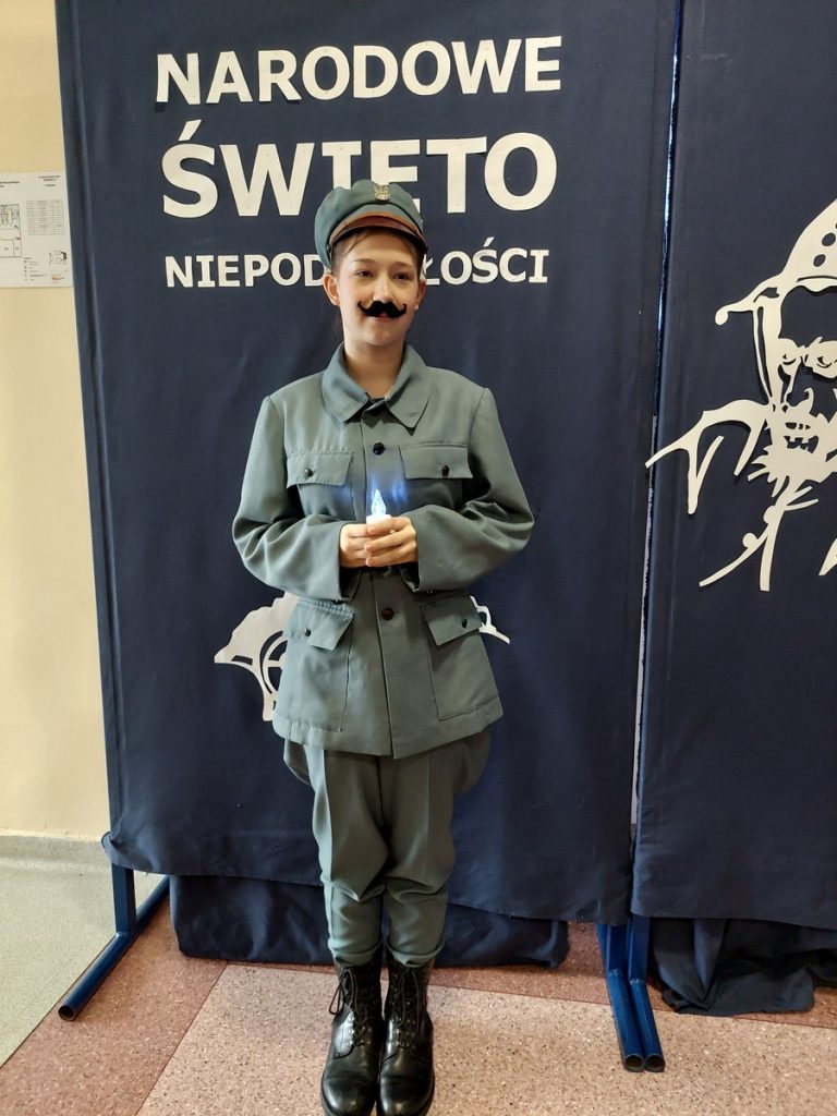 W piątek (10.11.2023 r.) obchodziliśmy w naszej szkole Narodowe Święto Niepodległości. Uroczystą akademię rozpoczął zespół instrumentalno-wokalny pieśnią „O mój rozmarynie rozwijaj się”. Potem recytatorzy, zasiadający przy okrągłym stoliku w świetle płonących świec, przywołali Chochoła i 39 widm postaci zasłużonych dla Polski.