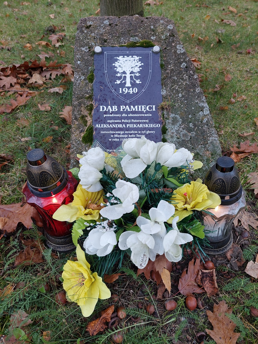 W tym uroczystym dniu nie zapomnieliśmy o Aleksandrze Piekarskim i zapaliliśmy znicze pod poświęconym mu Dębem Katyńskim.