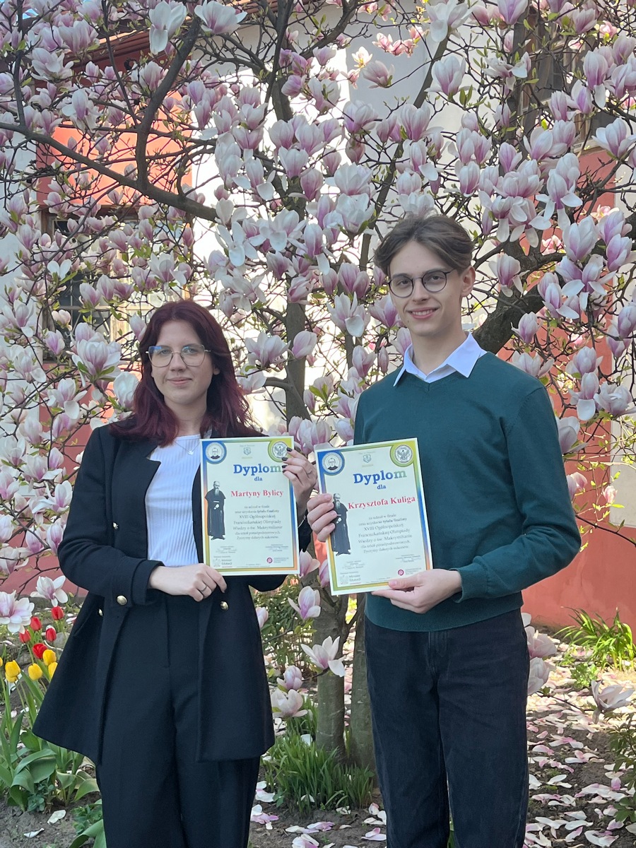 11 kwietnia w Siedlcach nasi uczniowie Martyna Bylica (klasa 3e) i Krzysztof Kulig (klasa 3e) reprezentowali „Czwórkę” podczas finału XVIII Ogólnopolskiej Franciszkańskiej Olimpiady wiedzy o św. Maksymilianie. Przyjemnie nam ogłosić, że zarówno Martyna, jak i Krzysztof otrzymali tytuł finalisty etapu centralnego Olimpiady.