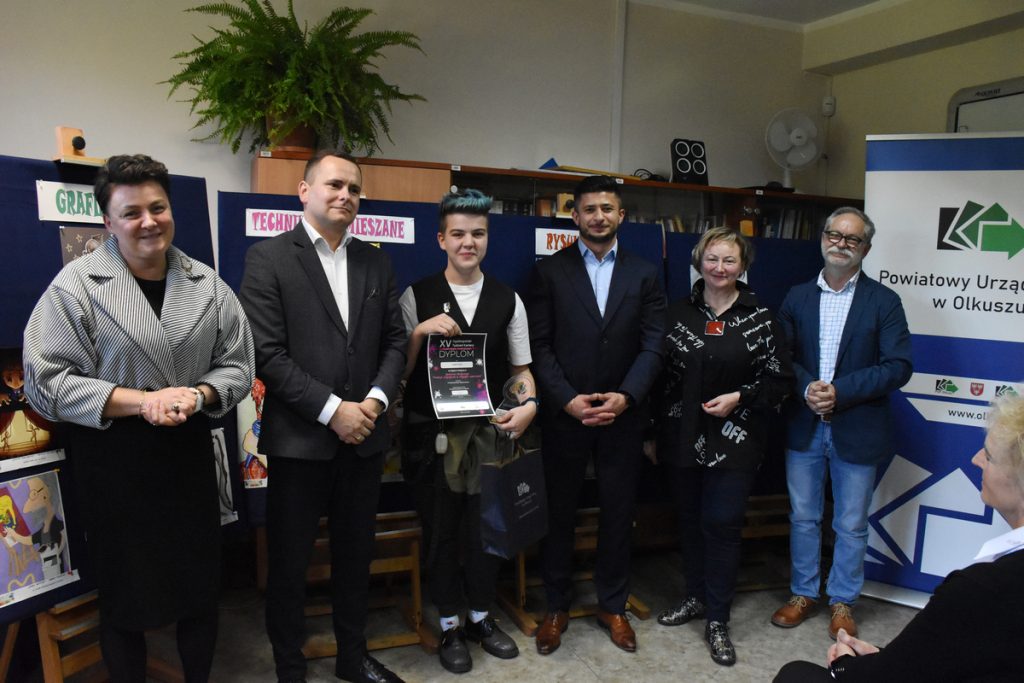 W dniu 18.10 br. w ramach XV Ogólnopolskiego Tygodnia Kariery pod hasłem „Talent i praca – to się opłaca” zorganizowanego przez Powiatowy Urząd Pracy w Olkuszu, odbyło się uroczyste otwarcie pokonkursowej wystawy plastycznej „Profesje artystyczne w krzywym zwierciadle”, w którym nasi uczniowie zdobyli wiele nagród i wyróżnień. Na konkurs wpłynęło 152 prace z różnych szkół ponadpodstawowych. Uczestnicy wykazali się niezwykłą wyobraźnią oraz kreatywnością w interpretacji tematu, co zaowocowało oryginalnymi pracami w technikach mieszanych, grafice komputerowej i rysunku.