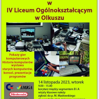 Uczniowie podczas wydarzenia mogli zapoznać się z historycznym sprzętem komputerowym jaki używali niegdyś ich rodzice. Gry i programy udostępnione były na komputerach Commodore C64, Amiga 500, Amiga 1200, konsolach PlayStation 1-3, Xbox, Nintendo, Nintendo Game Boy, Pegasus, Nintendo Game Cube czy Wii. Zaprezentowanych uczniom IV LO zostało prawie 50 jednostek sprzętowych.