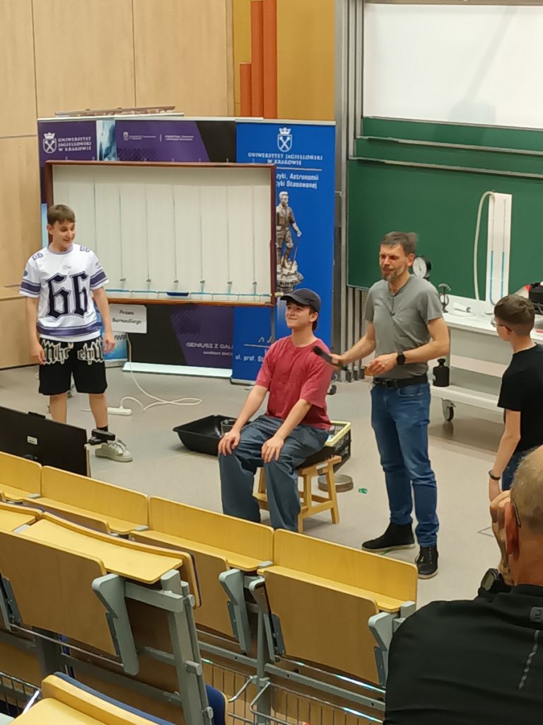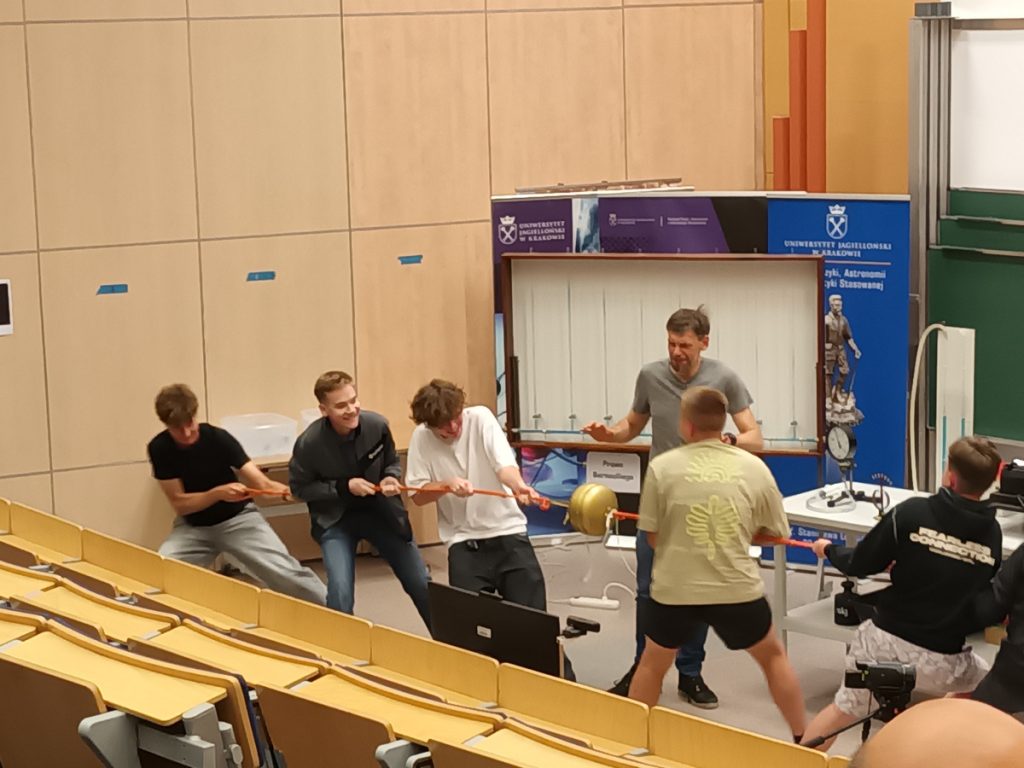 Druga część wycieczki to spotkanie z fizyką w doświadczeniach na Wydziale Fizyki, Astronomii i Informatyki Stosowanej UJ – temat zajęć „Wykład, który podniesie Wam ciśnienie”.