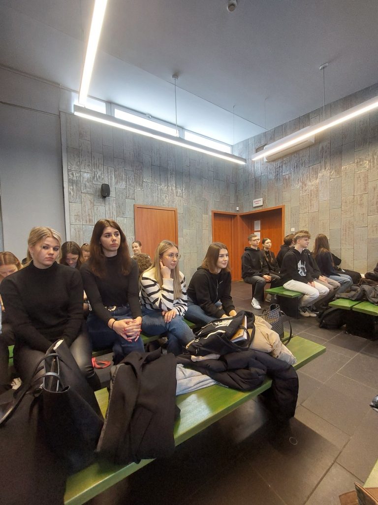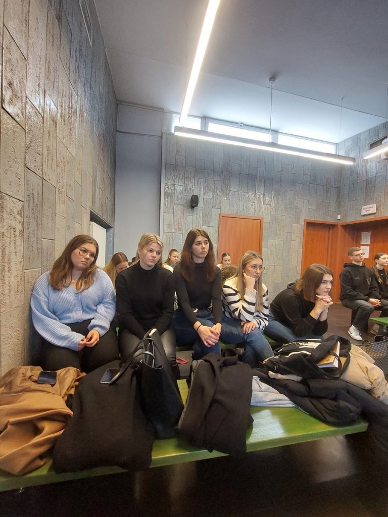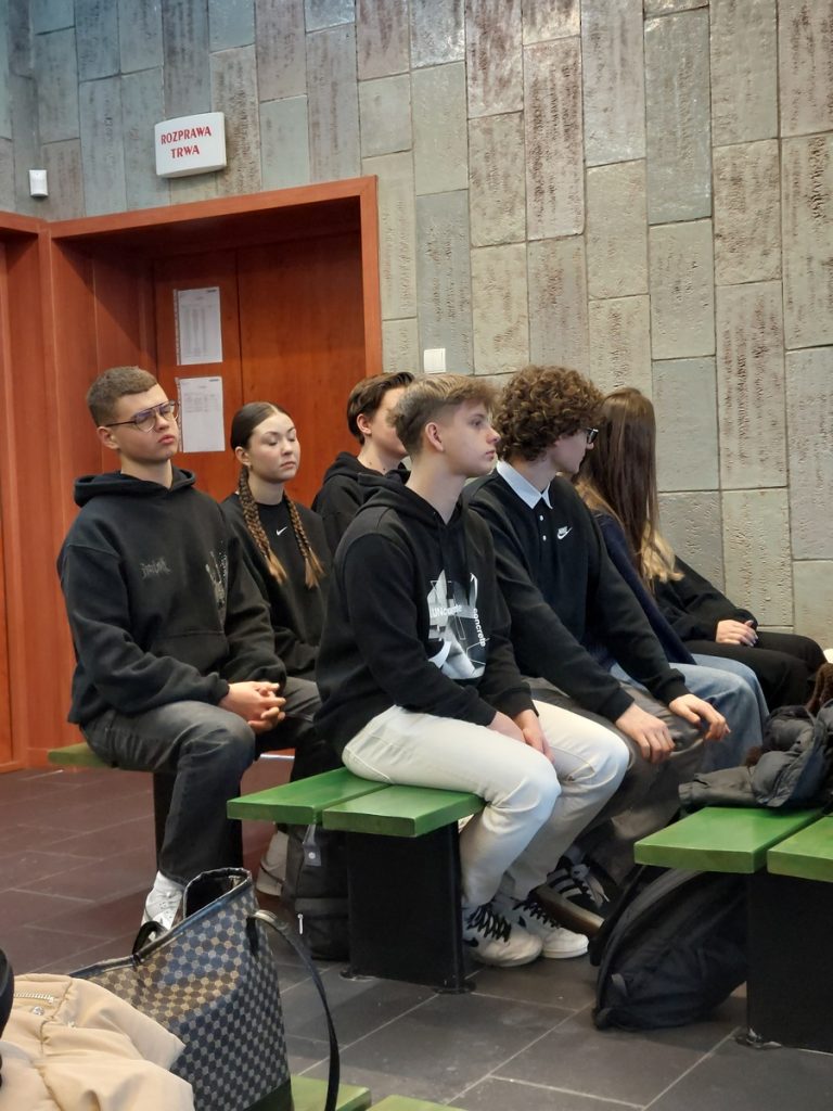 28 i 29 listopada 2023 r. uczniowie klas drugich, trzecich i czwartych, którzy realizują lekcje wiedzy o społeczeństwie w zakresie rozszerzonym, udali się do Sądu Rejonowego w Olkuszu. Podczas pogadanki dowiedzieli się o strukturze, organach i zadaniach wymiaru sprawiedliwości, uczestniczyli także w dwóch rozprawach sądowych. Wielkie wrażenie wywołał tymczasowy areszt sądowy, w którym licealiści ochoczo sprawdzali wygodę cel dla aresztantów. Takie ożywione lekcje edukacji obywatelskiej cieszą się wyjątkową popularnością wśród uczniów.