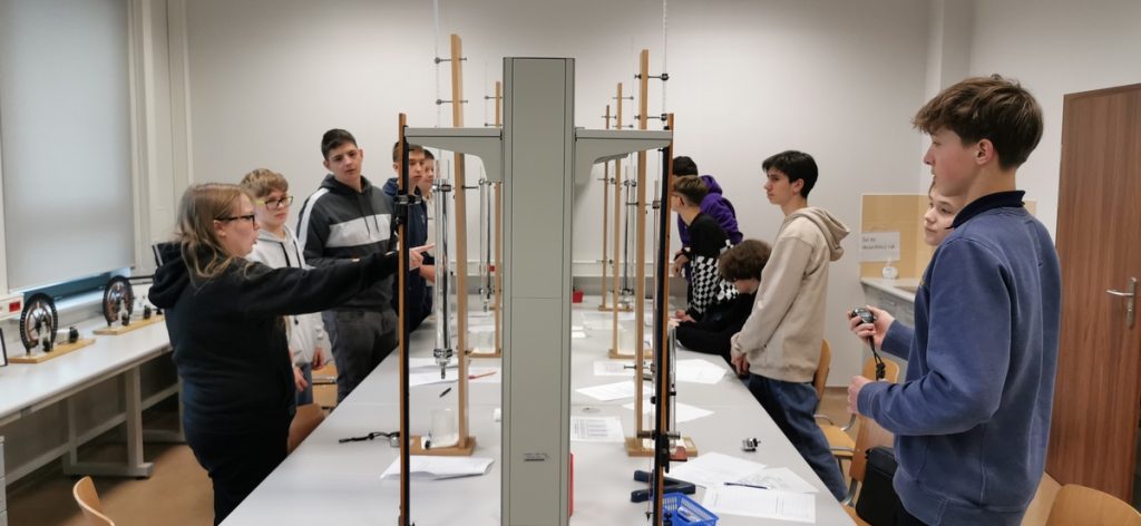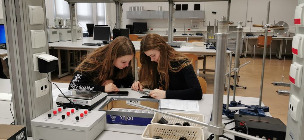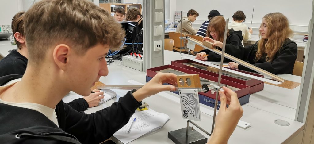 1 lutego 2024 r. uczniowie klasy 1F i 2C realizujący fizykę w zakresie rozszerzonym odwiedzili Wydział Fizyki, Astronomii i Informatyki Stosowanej UJ w Krakowie. Uczniowie brali udział w zajęciach laboratoryjnych w I Pracowni Fizycznej. Celem zajęć było samodzielne wykonanie eksperymentów pod kierunkiem pracowników Instytutu Fizyki. Młodzież zajmowała się doświadczeniami z zakresu: fizyki maszyn prostych, wyznaczania statycznego i kinetycznego współczynnika tarcia przy pomocy równi pochyłej oraz wyznaczania współczynnika lepkości cieczy metodą Stokesa.