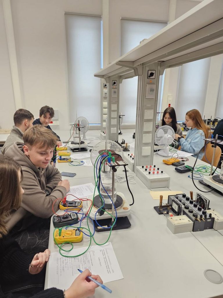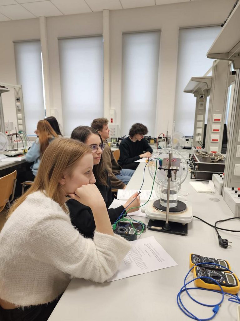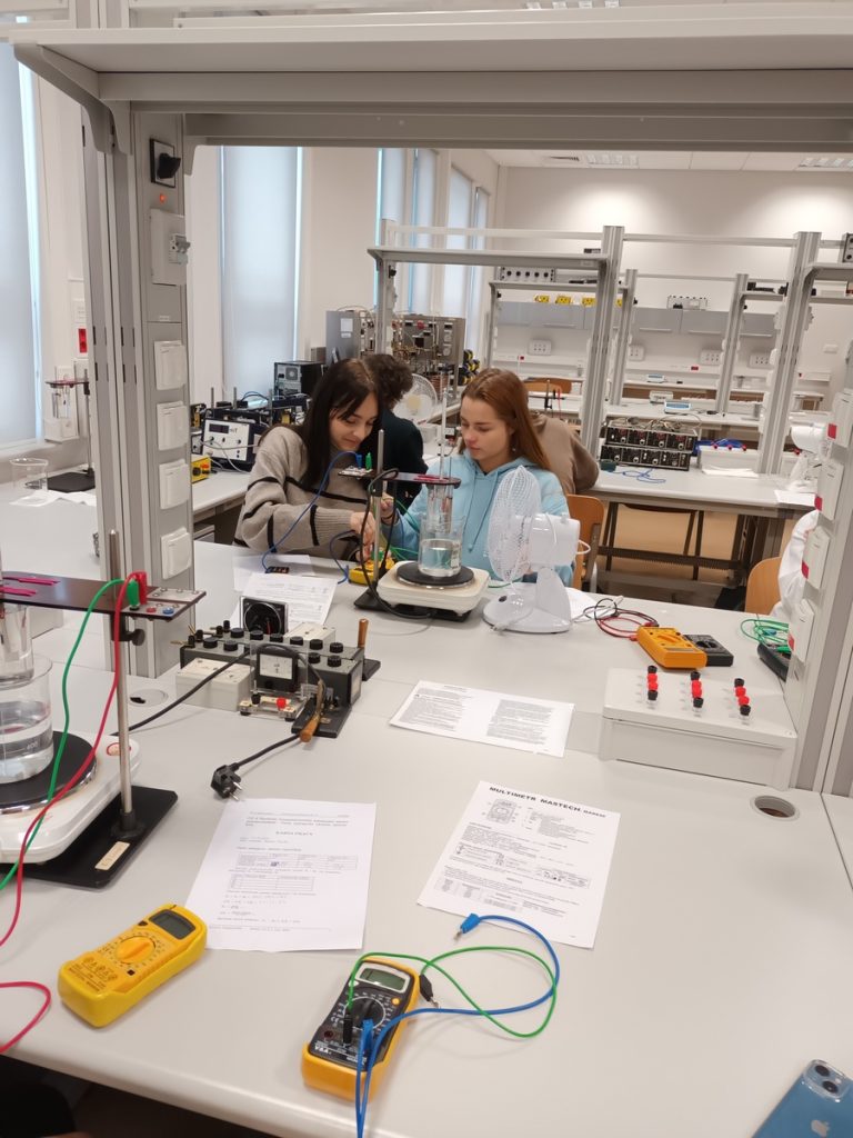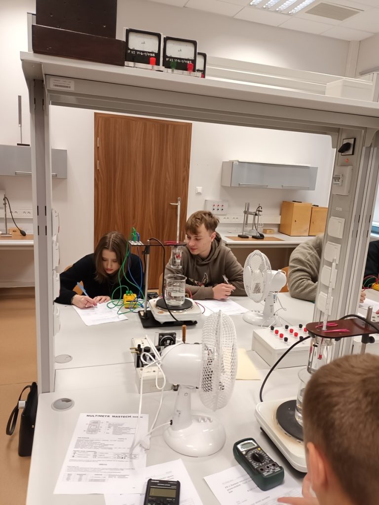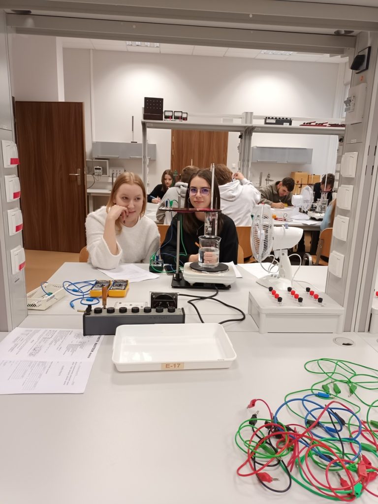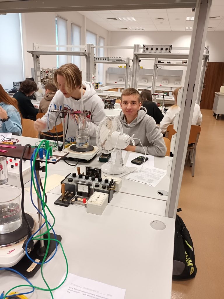 7 grudnia 2023 r. uczniowie IV LO realizujący fizykę w zakresie rozszerzonym (klasy 2H, 3C i 3F) brali udział w zajęciach laboratoryjnych w I Pracowni Fizycznej. Uczniowie w dwuosobowych grupach wykonywali samodzielnie eksperymenty pod kierunkiem pracowników Instytutu Fizyki. Tematyka zajęć dotyczyła: