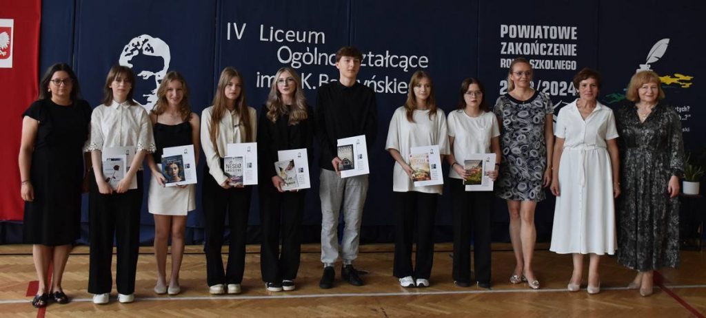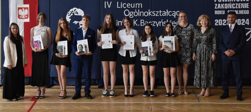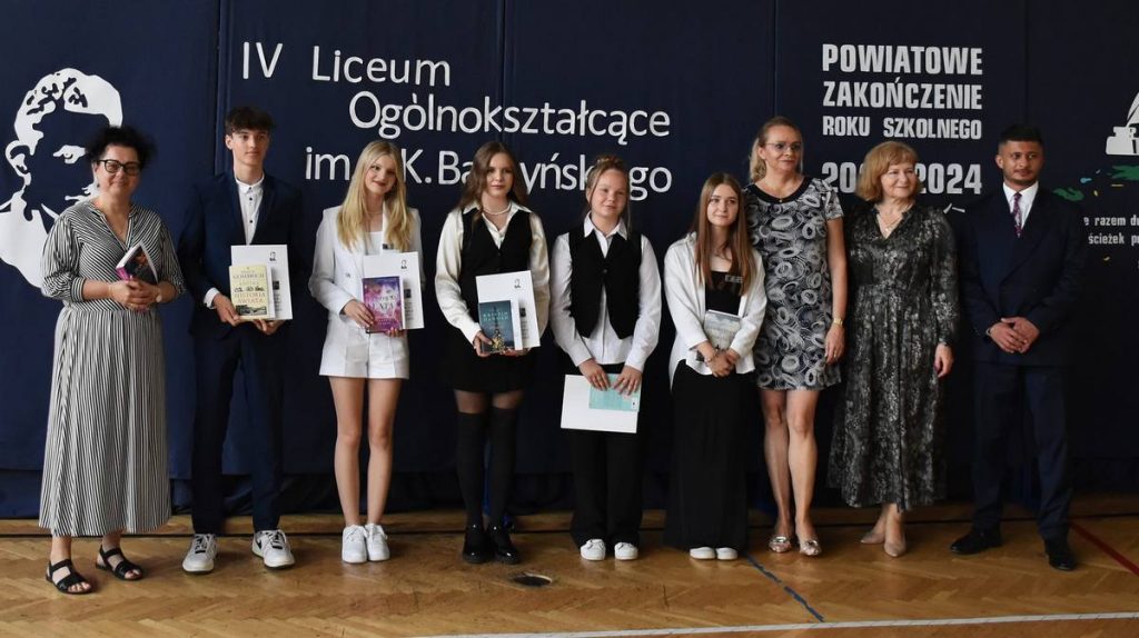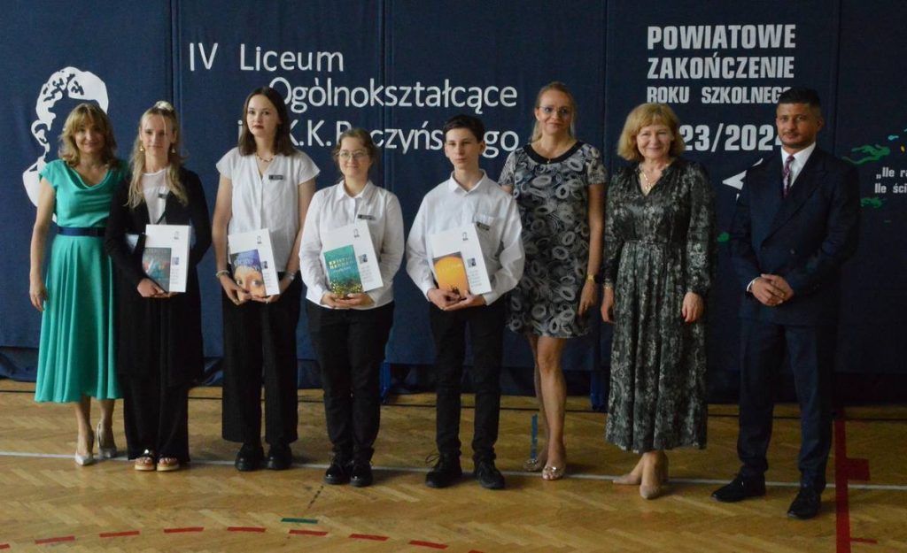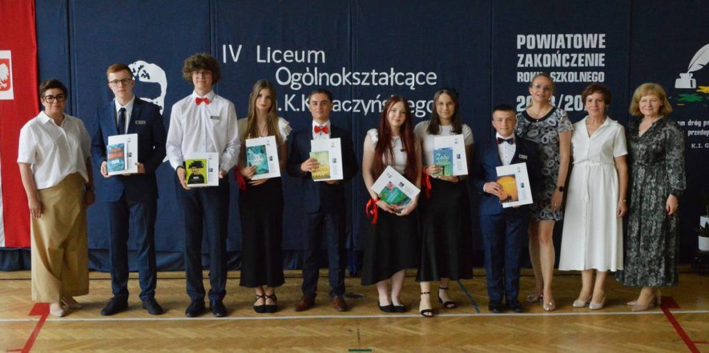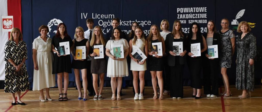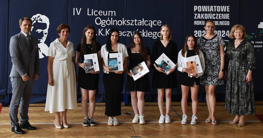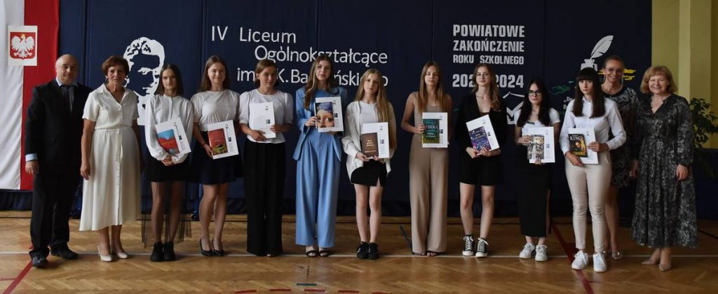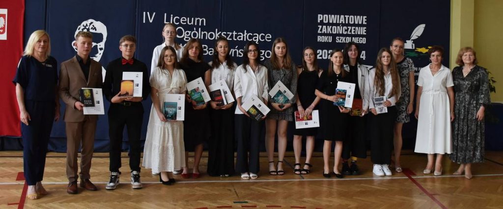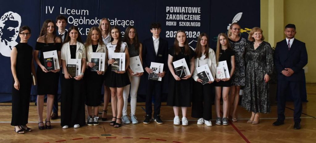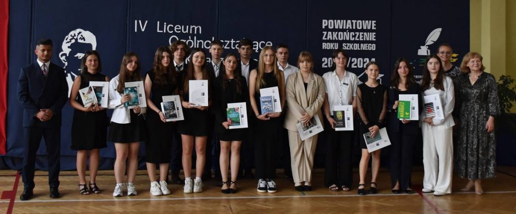 Pani Dyrektor Renata Dylewska podziękowała wszystkim nauczycielom, uczniom oraz pracownikom szkoły za pracę i zaangażowanie w mijającym roku szkolnym. Starosta Bogumił Sobczyk wręczył uzdolnionym uczniom stypendia. Nagrodzonym serdecznie gratulujemy! Za wspaniałe wyniki w nauce uczniowie „czwórki” zostali nagrodzeni świadectwami z wyróżnieniem, które odebrali z rąk Pani Dyrektor oraz Pana Starosty. Nagrody książkowe, zakupione przez Radę Rodziców zostały wręczone przez przewodniczącą – Sylwię Bukład.
