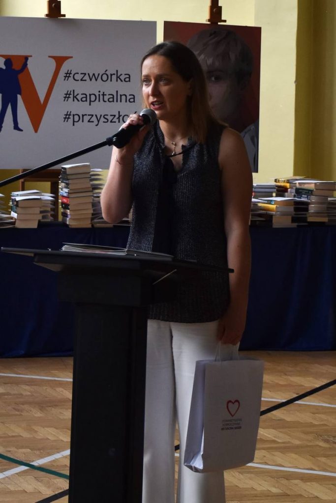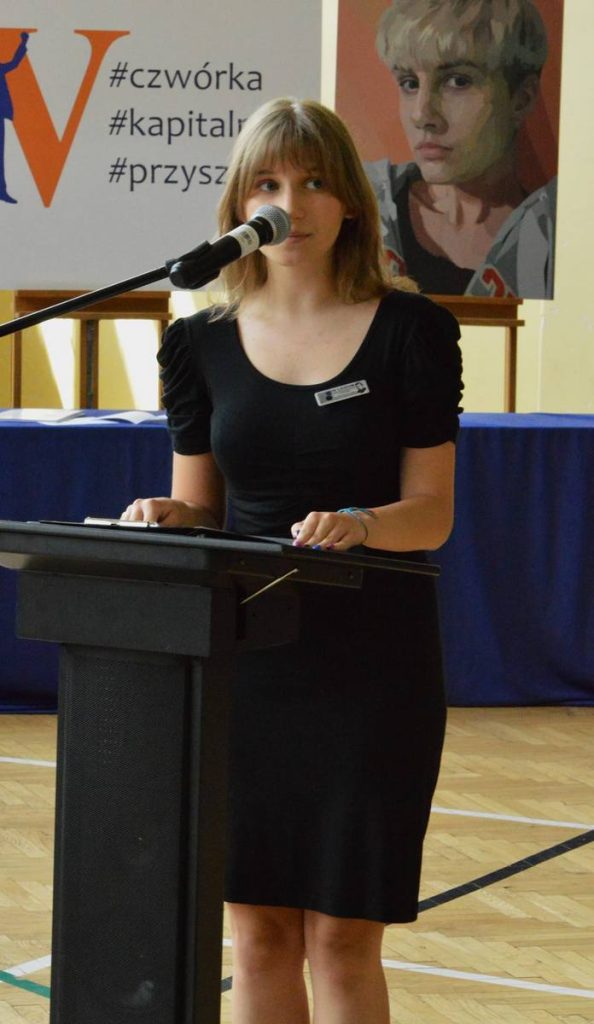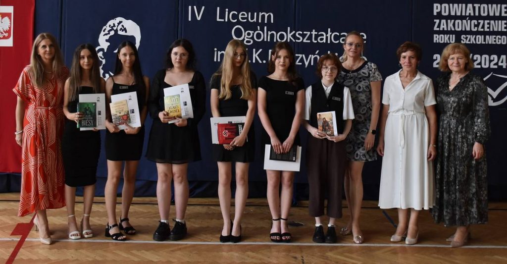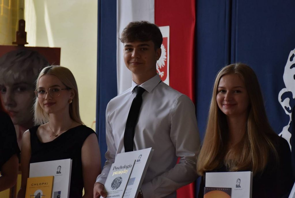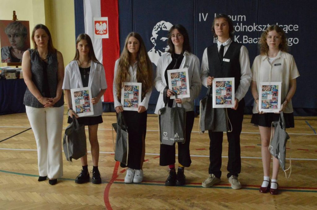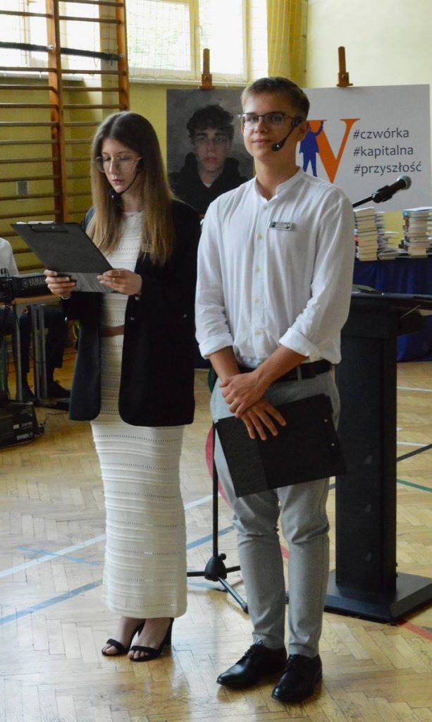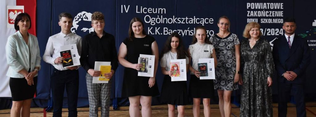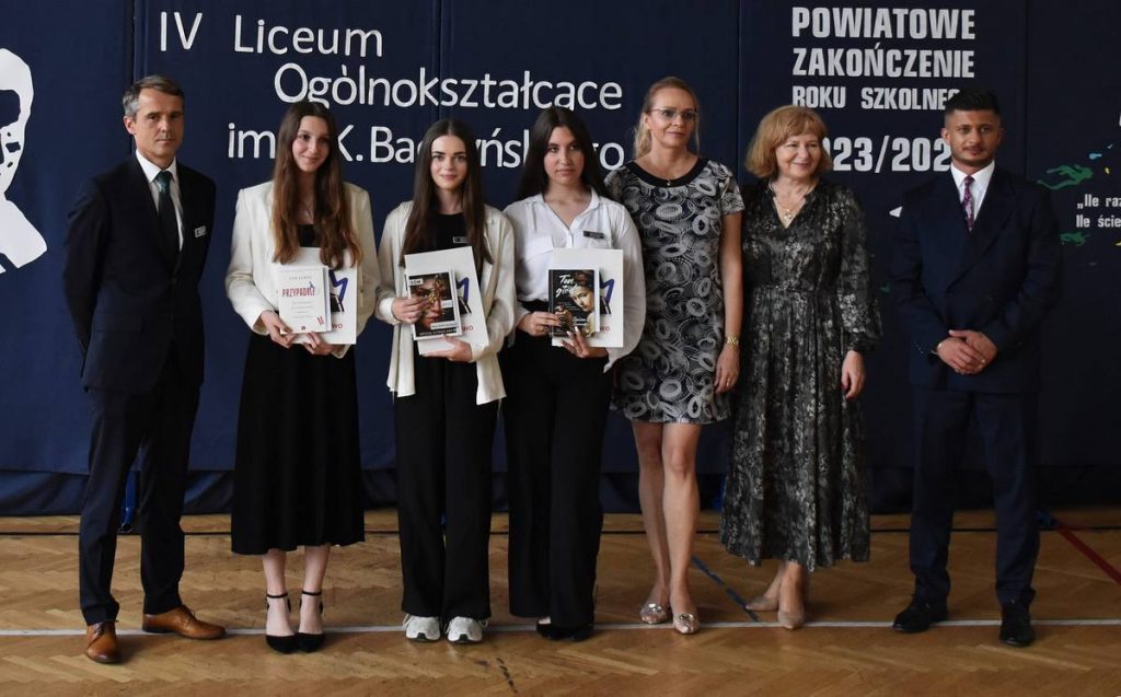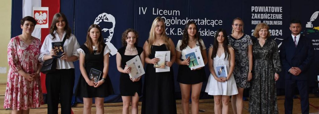 Pani Dyrektor Renata Dylewska podziękowała wszystkim nauczycielom, uczniom oraz pracownikom szkoły za pracę i zaangażowanie w mijającym roku szkolnym. Starosta Bogumił Sobczyk wręczył uzdolnionym uczniom stypendia. Nagrodzonym serdecznie gratulujemy! Za wspaniałe wyniki w nauce uczniowie „czwórki” zostali nagrodzeni świadectwami z wyróżnieniem, które odebrali z rąk Pani Dyrektor oraz Pana Starosty. Nagrody książkowe, zakupione przez Radę Rodziców zostały wręczone przez przewodniczącą – Sylwię Bukład.