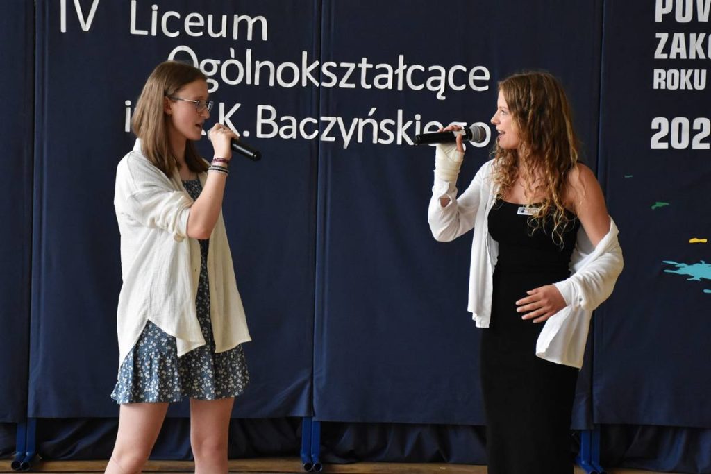 21 czerwca 2024 r. odbyło się w murach naszego liceum Powiatowe Zakończenie Roku Szkolnego 2023/24. Gości przywitali Antoni i Bartłomiej Wierciochowie – stypendyści Ministerstwa Kultury i Dziedzictwa Narodowego, którzy swoją grą na klarnecie oraz saksofonie wprawili obecnych w radosny, wakacyjny nastrój.