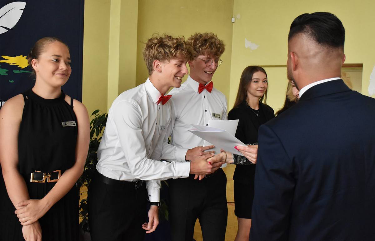 21 czerwca 2024 r. odbyło się w murach naszego liceum Powiatowe Zakończenie Roku Szkolnego 2023/24. Gości przywitali Antoni i Bartłomiej Wierciochowie – stypendyści Ministerstwa Kultury i Dziedzictwa Narodowego, którzy swoją grą na klarnecie oraz saksofonie wprawili obecnych w radosny, wakacyjny nastrój.