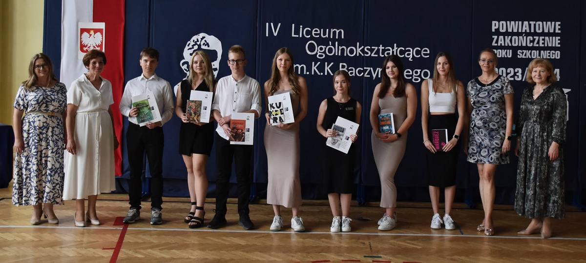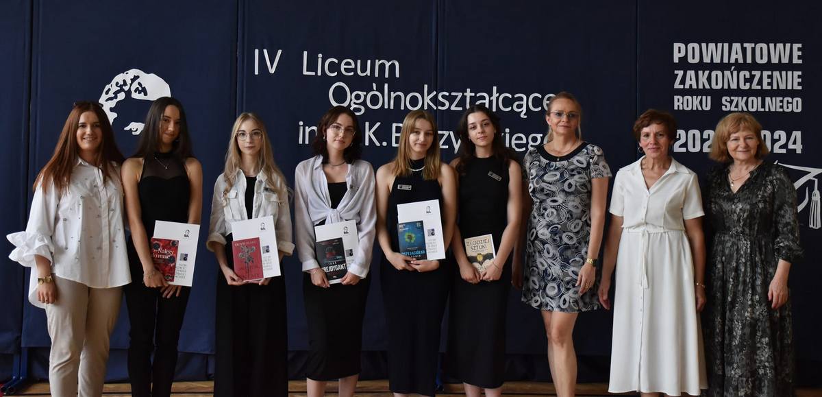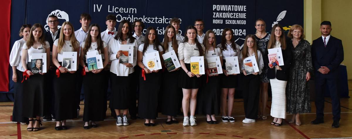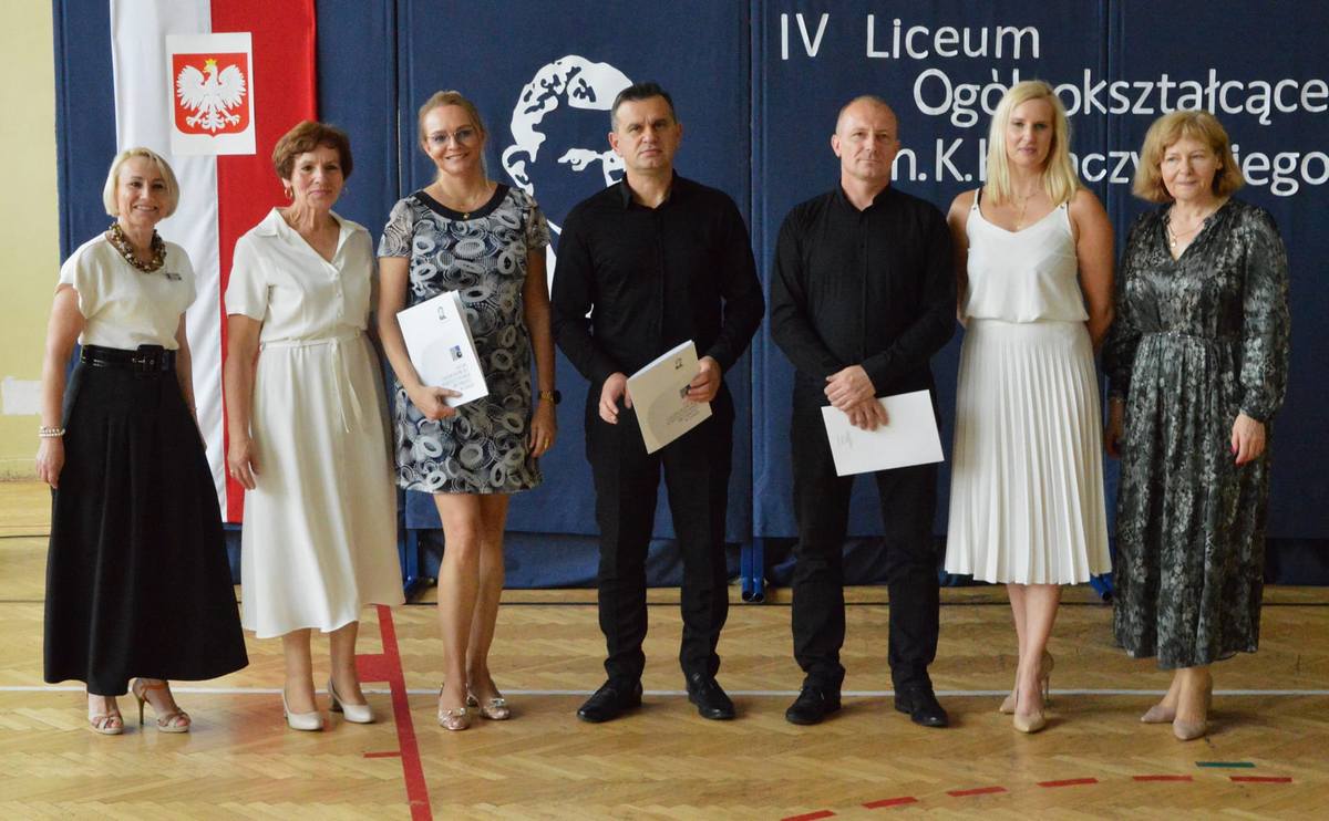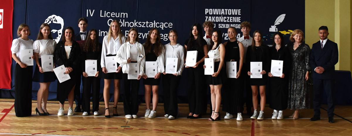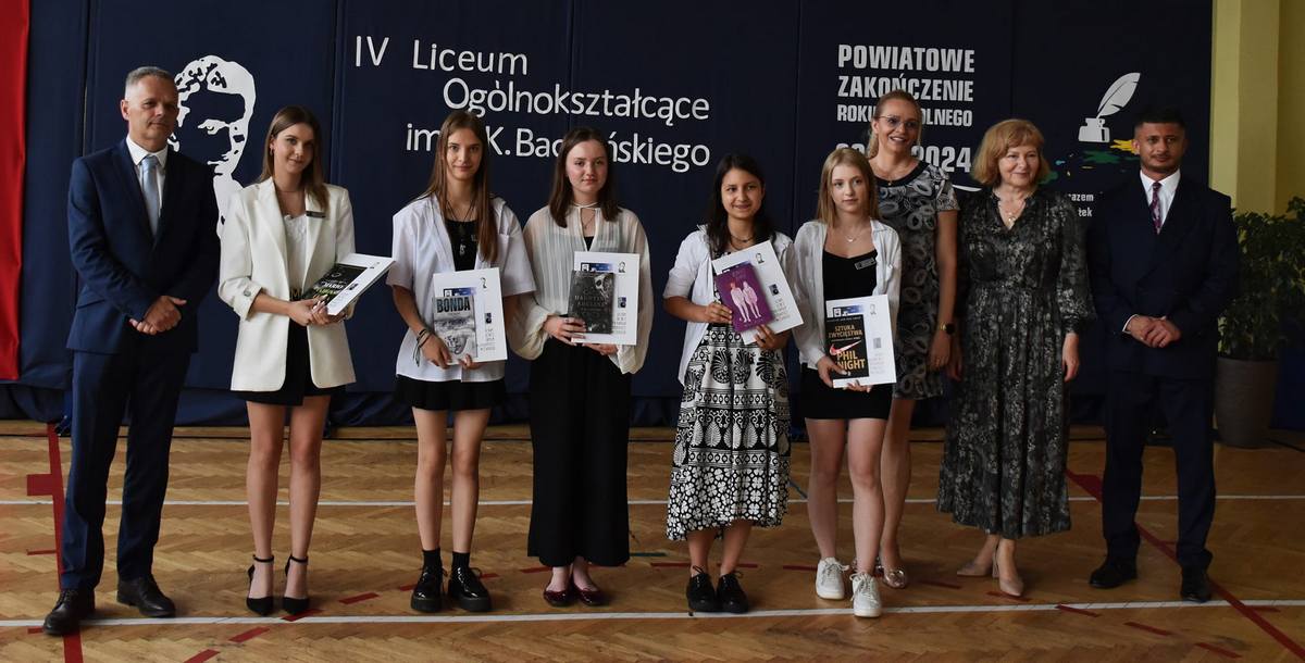 Pani Dyrektor Renata Dylewska podziękowała wszystkim nauczycielom, uczniom oraz pracownikom szkoły za pracę i zaangażowanie w mijającym roku szkolnym. Starosta Bogumił Sobczyk wręczył uzdolnionym uczniom stypendia. Nagrodzonym serdecznie gratulujemy! Za wspaniałe wyniki w nauce uczniowie „czwórki” zostali nagrodzeni świadectwami z wyróżnieniem, które odebrali z rąk Pani Dyrektor oraz Pana Starosty. Nagrody książkowe, zakupione przez Radę Rodziców zostały wręczone przez przewodniczącą – Sylwię Bukład.