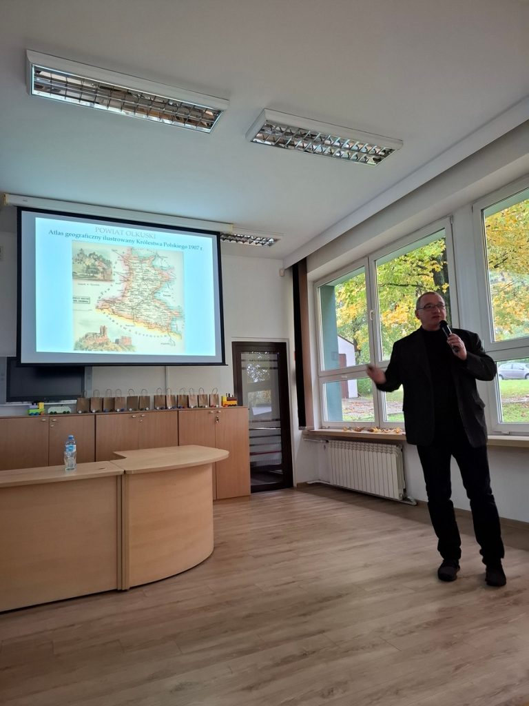 Wykład ilustrowany był wieloma unikatowymi, archiwalnymi  zdjęciami. Lekcja, w której uczestniczyliśmy, to kolejna propozycja pana Jacka Sypienia oraz Powiatowej i Miejskiej Biblioteki Publicznej w Olkuszu. Każda jest wyjątkowo ciekawa. Chętnie weźmiemy udział w następnych.