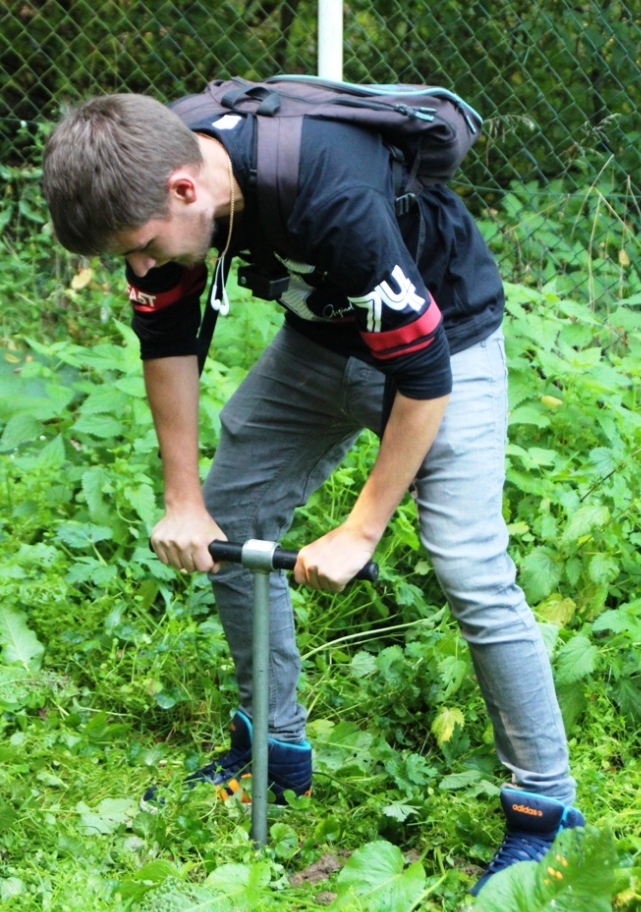 Na wstępie przypomniane zostały podstawowe pojęcia hydrologiczne oraz funkcje przyrządów znajdujących się w ogródku meteorologicznym (udało się nawet zaimprowizować opad, aby uruchomić pluwiograf),. Następnie uczniowie musieli zmierzyć się ze żmudną pracą w terenie nad Dworskim Potokiem: pomiar natężenia przepływu wody metodą wolumetryczną, skomplikowane obliczenia i uśrednianie wyników, odwierty „studni” i metody badawcze zwierciadła wód podziemnych – oto czym się zajmowali.
