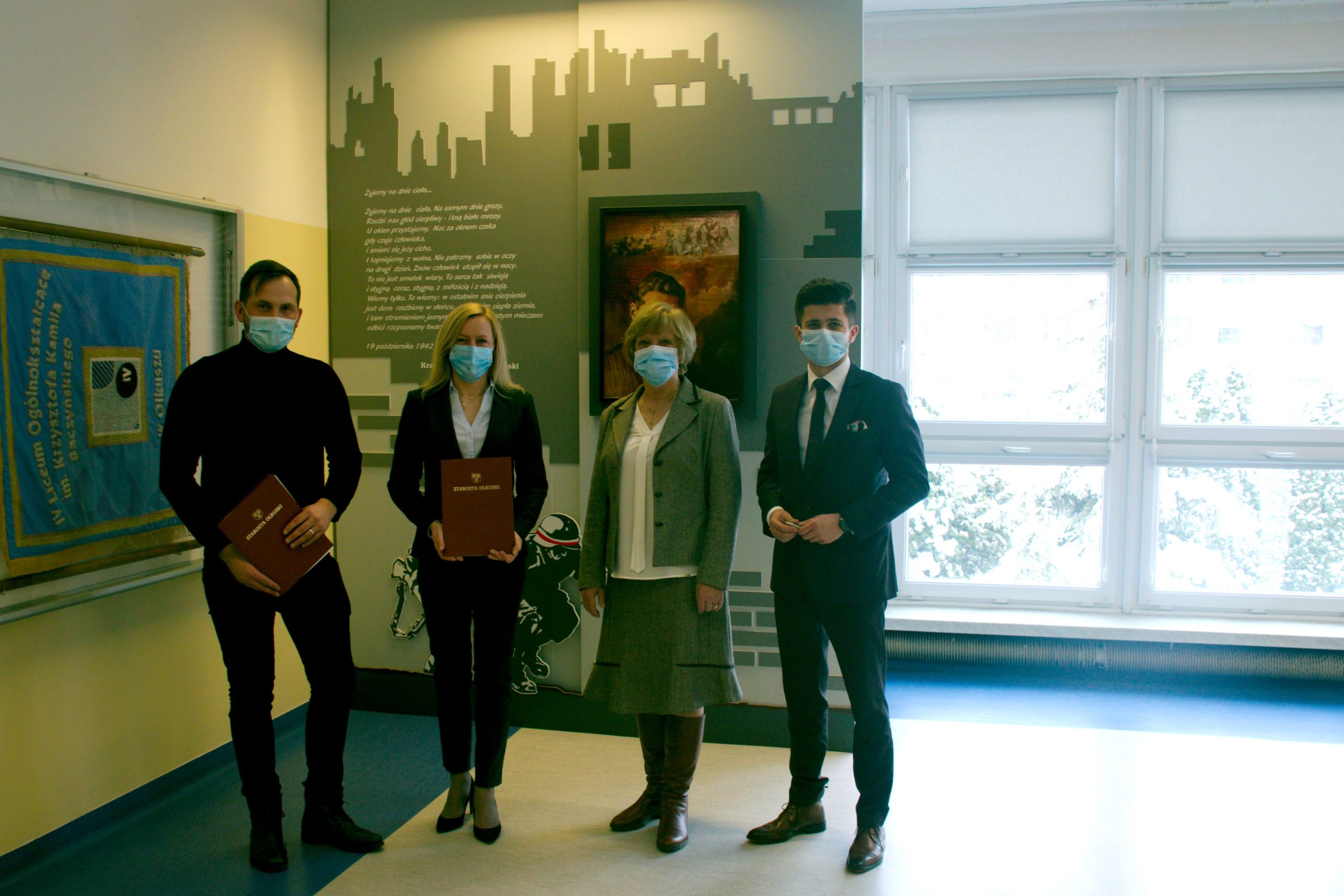 Rok 2021 rozpoczyna się dla naszej szkoły bardzo pomyślnie. Właśnie dzisiaj została podpisana umowa z firmą MARMATOR, która przeprowadzi termomodernizację budynku IV LO. Dzięki zaangażowaniu Pana Starosty Bogumiła Sobczyka, jego zastępczyni Pani Krystyny Kowalewskiej oraz przychylności Zarządu Powiatu Olkuskiego i Rady Powiatu Olkuskiego, udało się pozyskać fundusze na przeprowadzenie prac wartych około 3 mln złotych. Inwestycja będzie współfinansowana ze środków Europejskiego Funduszu Rozwoju Regionalnego oraz Rządowego Funduszu Inwestycji Lokalnych.