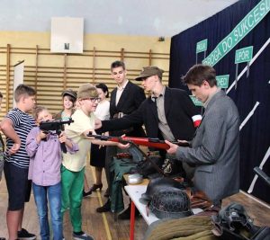 Członkowie Klubu – i zarazem członkowie Stowarzyszenia Po Prostu Działaj – zapoznali dzieci również z historią oddziałów partyzanckich działających na terenie powiatu olkuskiego, szczególnie oddziału „Hardego”. Zarówno prezentacja „akcesoriów”, jak i krótki wykład o historii, spotkały się z dużym zainteresowaniem naszych młodszych kolegów.