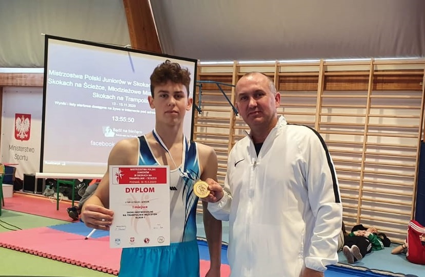 Miło nam poinformować, że Wiktor Starczyński, uczeń klasy 2 Fp, podczas rozgrywanych w dn. 13-15 listopada w Poznaniu Mistrzostw Polski Juniorów został Mistrzem Polski Juniorów w Skokach na Trampolinie. Wiktor nie dał szans swoim rywalom – po eliminacjach zajmował pierwsze miejsce i do ścisłego finału startował z ostatniego miejsca jako faworyt. W finale potwierdził swoją formę i zajął pierwsze miejsce. Warto dodać że Wiktor jest członkiem Kadry Narodowej w Skokach na Trampolinie. Serdecznie gratulujemy!