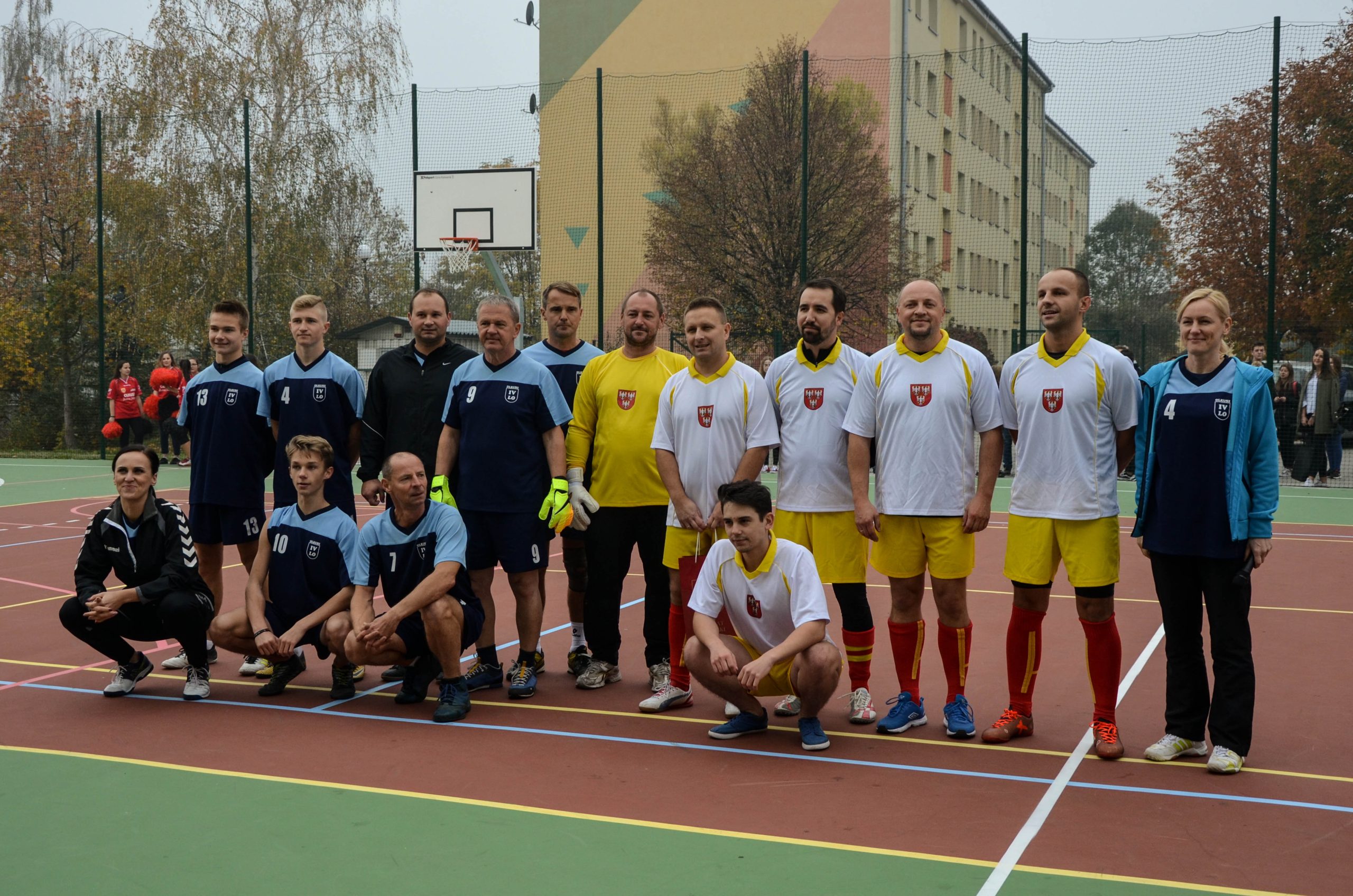 W piątek, 19 października na boisku szkolnym spotkały się dwie drużyny – drużyna Starostwa Powiatowego oraz reprezentacja IV LO, aby oficjalnie oddać do użytku remontowane w czasie wakacji boisko szkolne. Pod wieloma względami był to mecz wyjątkowy: wymieszane składy drużyn (drużynę Starostwa wspomagał nasz uczeń (Eryk Szeląg), panie wspólnie z panami w szkolnej reprezentacji i pedagodzy w niecodziennych sytuacjach.