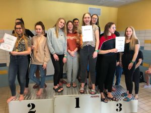 Jolanta Muzyka 1Eg, Martyna Cień 1Eg, Oliwia Banaszkiewicz 1Ap, zajęła pierwsze