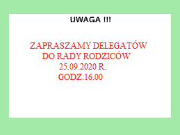 25 września o godz.16.00 w sali gimnastycznej odbędzie się zabranie delegatów do Rady Rodziców. Zapraszamy