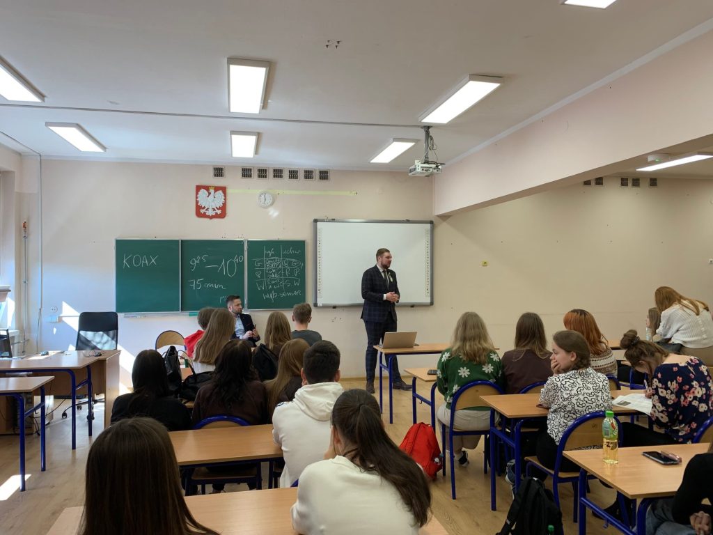 Dziś miała miejsce lekcja wiedzy o społeczeństwie z udziałem radnego Rady Miasta w Bukownie – Sebastiana Piasty i Posła na Sejm RP – Aleksandra Miszalskiego. Tematem spotkania było poznanie struktur samorządu terytorialnego oraz na czym polega praca parlamentarzysty.