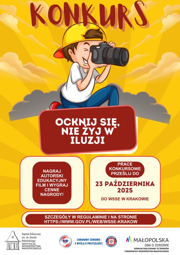 Konkurs organizuje: Wojewódzka Stacja Sanitarno-Epidemiologiczna w Krakowie wspólnie z Wojewódzkim Ośrodkiem Terapii Uzależnienia i Współuzależnienia Szpitala Klinicznego im. dr. Józefa Babińskiego SP ZOZ.